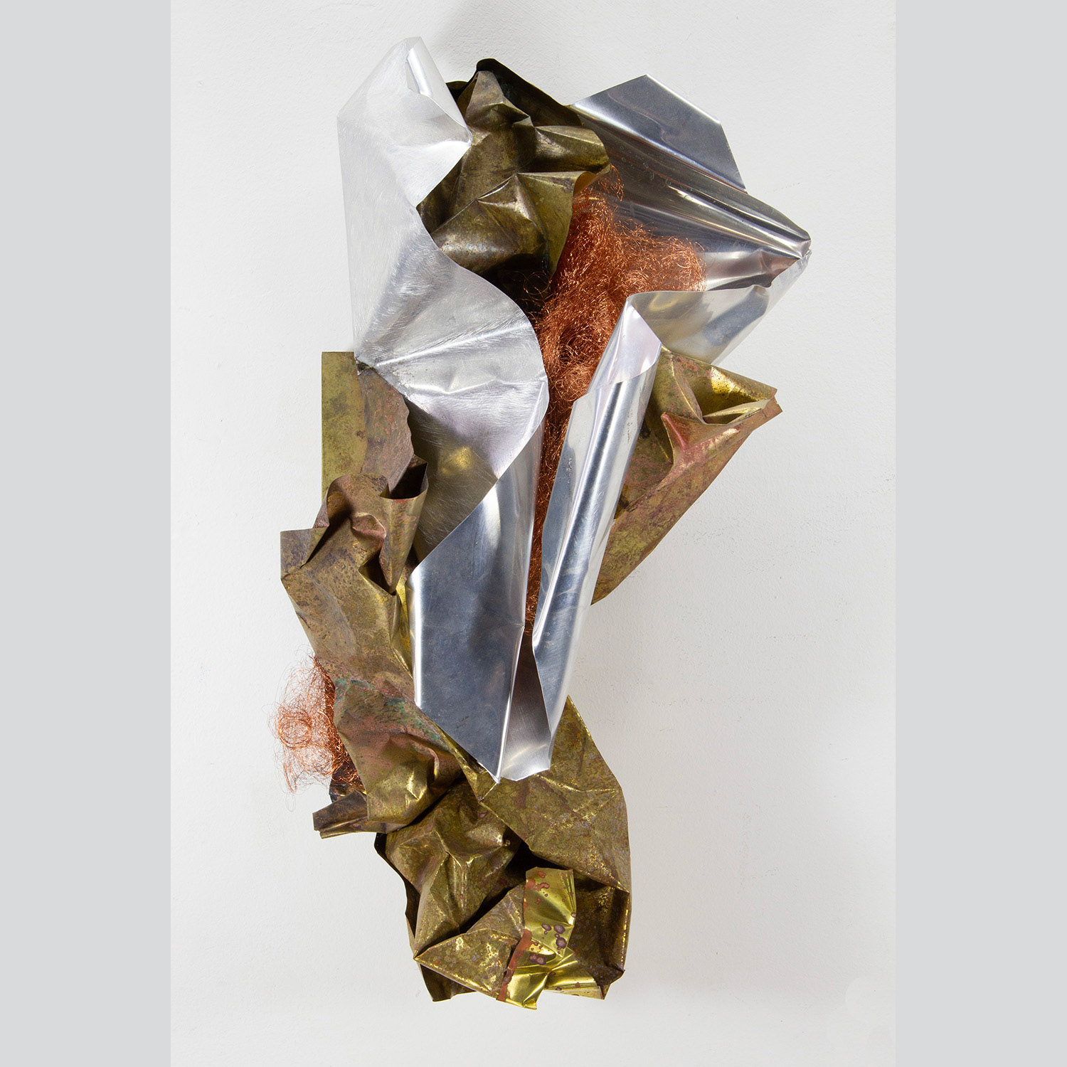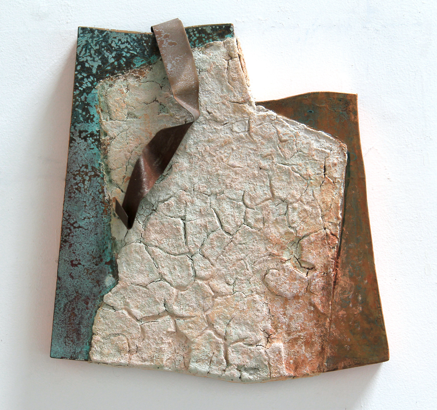 2000 16x16 inches, copper, steel and clay on irregular panel